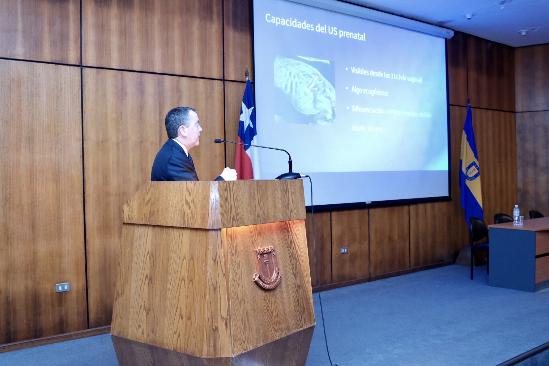 El Primer Curso de Nefrología Pediátrica, organizado por el Departamento de Pediatría de la Facultad de Medicina de la UdeC, se realizó el 17 y 18 de noviembre y contó con la participación del destacado especialista materno fetal de nuestra Clínica, Fernando Viñals Larronde, quien presentó la experiencia y el trabajo de los últimos 15 años en el diagnóstico de malformaciones renales y de la vía urinaria del feto.
